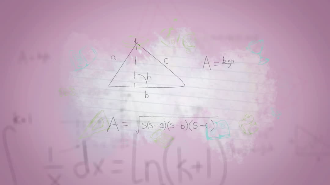 Digital animation displaying math formulas on abstract pink background, making it ideal for educational content and learning resources in mathematics and science. Utilize in online courses, academic presentations, or digital media promoting STEM subjects to enhance visual engagement.