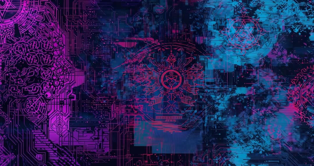 AI Generated Image. This digital abstract piece blends vibrant pink and blue circuit patterns with techno-symbols and glitch effects, showcasing a futuristic blend of art and technology. Ideal for use as a background in multimedia projects, technology articles, digital interfaces, or wallpapers, this video encapsulates the cutting edge of AI-generated design and appeals to enthusiasts of digital and abstract art styles.
