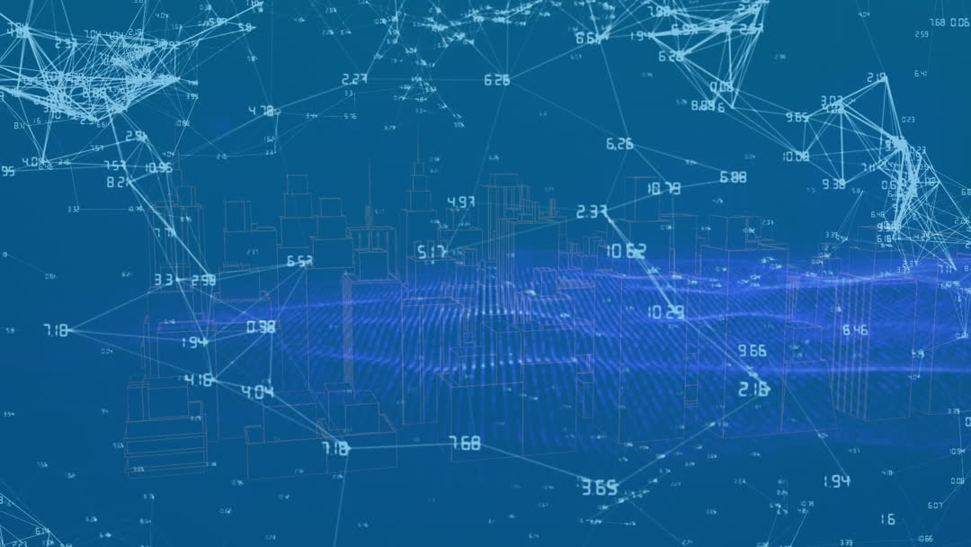 Abstract Network Connections Overlaying Digital Cityscape Video