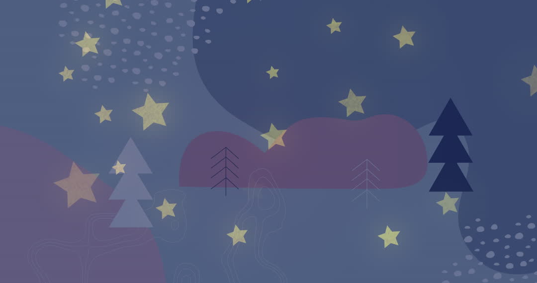 Calming abstract design with stars and tree silhouettes on a mysterious dark background, perfect for adding a serene feel to presentations, artistic backgrounds, and designs aiming for a dreamy or contemplative mood.