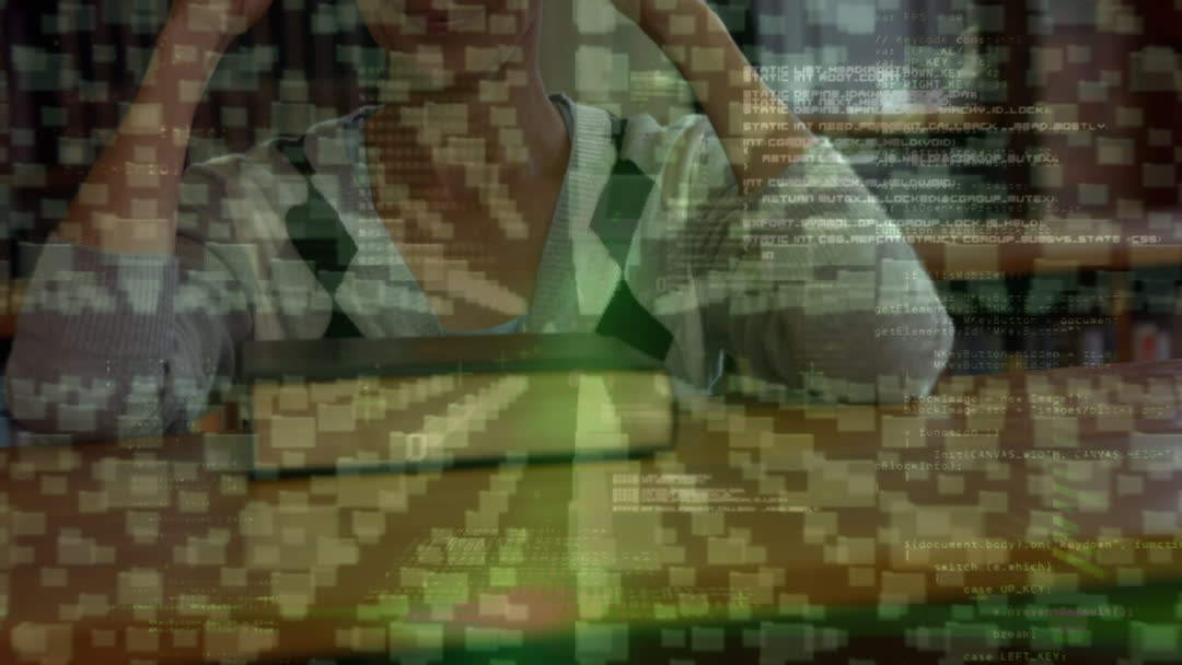 Abstract Overlay Code with Thoughtful Person in Background Video