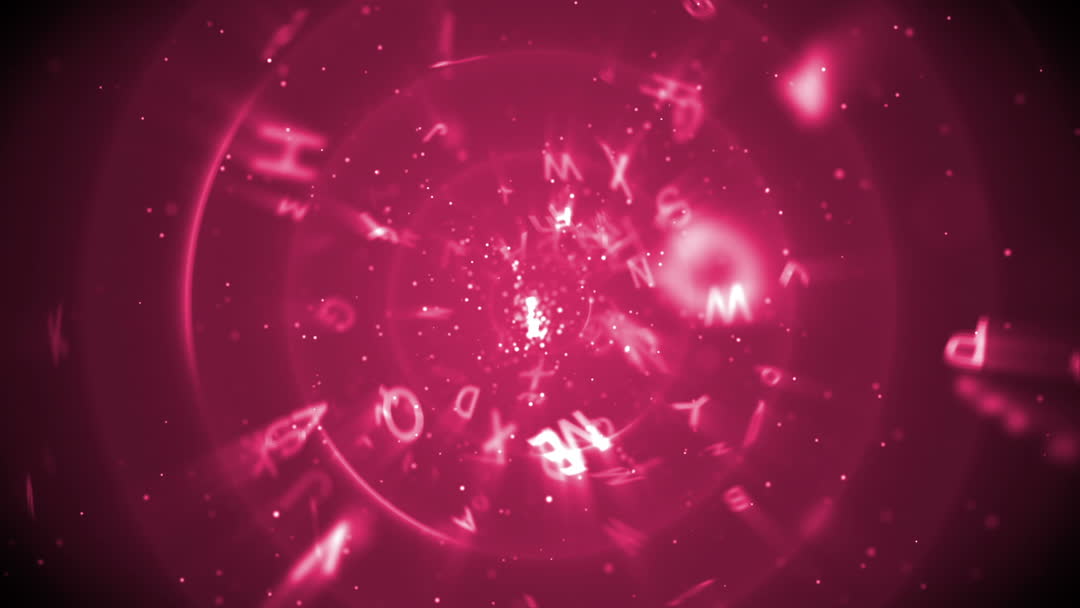 This vibrant video features pink alphabet letters in a glowing, swirling vortex. The dynamic motion suggests a focus on creativity and imagination. It is ideal for use in graphics conveying innovation, abstract ideas, or digital content design.