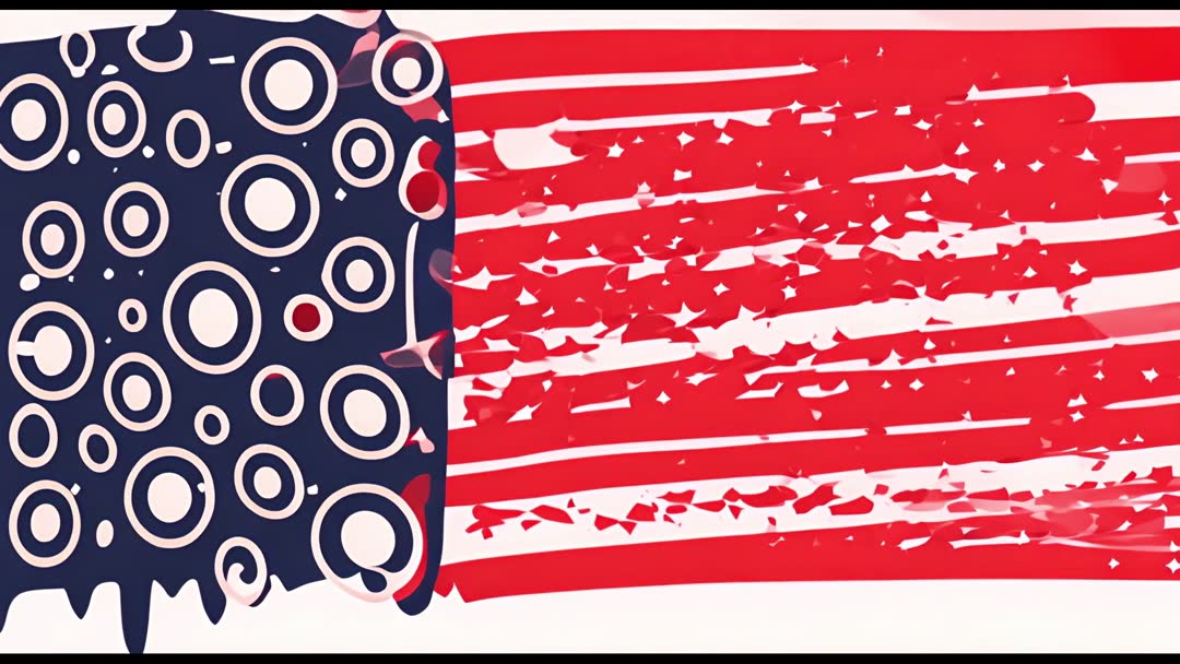 AI Generated Video. Abstract design showcasing an artistic interpretation of the United States flag. Circles and star patterns blend with traditional red stripes and blue. Ideal for patriotic events, Independence Day art, backgrounds for American-themed visuals, or creative educational content emphasizing American history or culture.