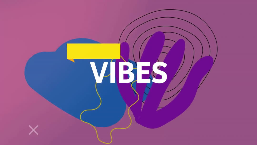Features 'Vibes' text in bold overlaid on interactive digital blinkbrilliantly anomalous backgrounds with eye-catching colors and shapes juxtaposed. Could be used in social media visuals, artistic publications, graphic design inspiration, digital marketing ads, and thematic broadcasts focuses vibrant atmospheres.