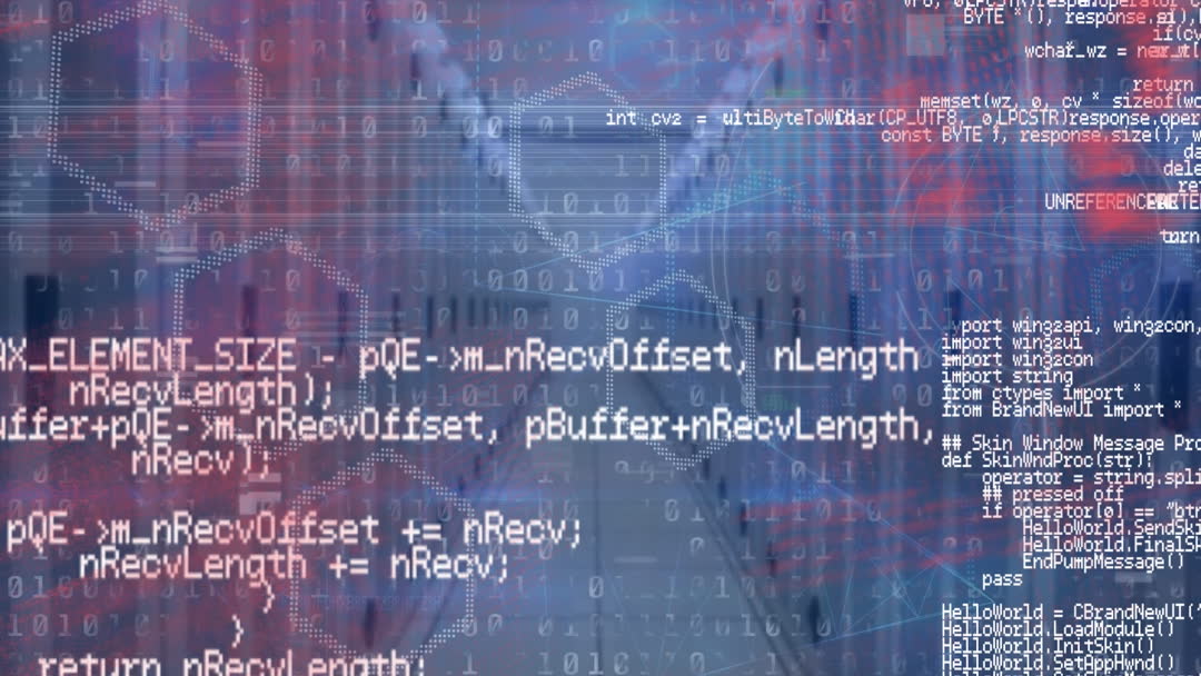 Animated depiction shows an abstract view merging data processing and technology concepts. Digital information is overlaid with hexagonal designs, set against the backdrop of organizational IT infrastructure in a server room. Suitable for illustrating themes related to advanced computing, cybersecurity environments, programming visualization, technology workshops, or digital-analysis tools. Ideal for PowerPoints, technology articles, and educational content about systems operations.