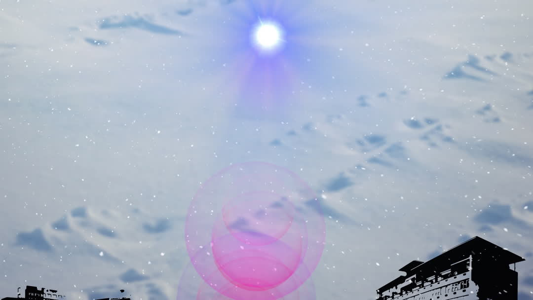 This visual captures an abstract blend of a winter landscape with animated snow and light spots. The silhouettes of urban buildings against a softly lit snowy sky create a serene yet modern atmosphere. Ideal for use in digital design projects, holiday themed promotions, art prints, or as a background in presentations focusing on winter themes and digital interface arts.