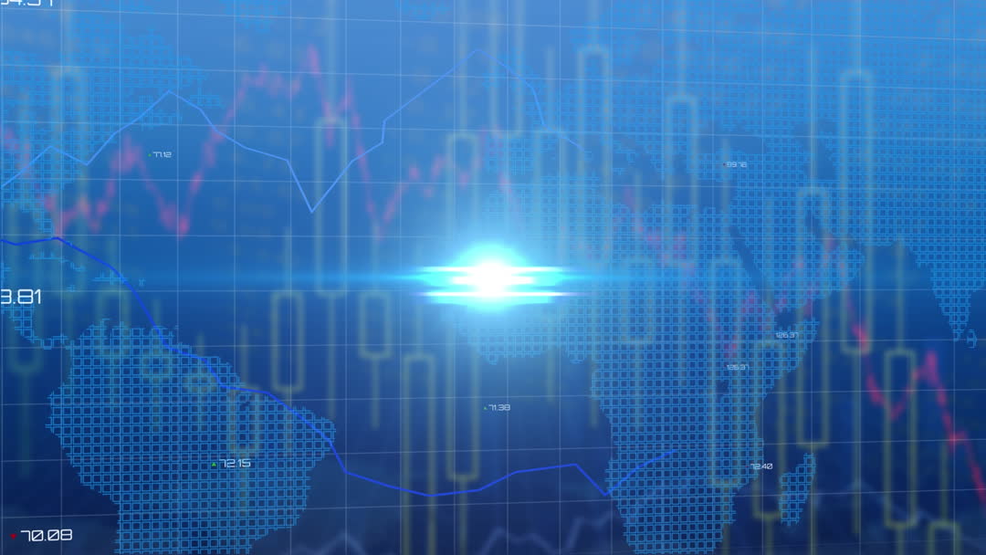 Visual combines abstract technology and global business elements with a focus on data visualization and statistics. Suitable for illustrating trends in global economics, digital transformation in finance, or technological advancements. Ideal for business presentations, blog posts, and educational materials related to data analysis or market predictions.