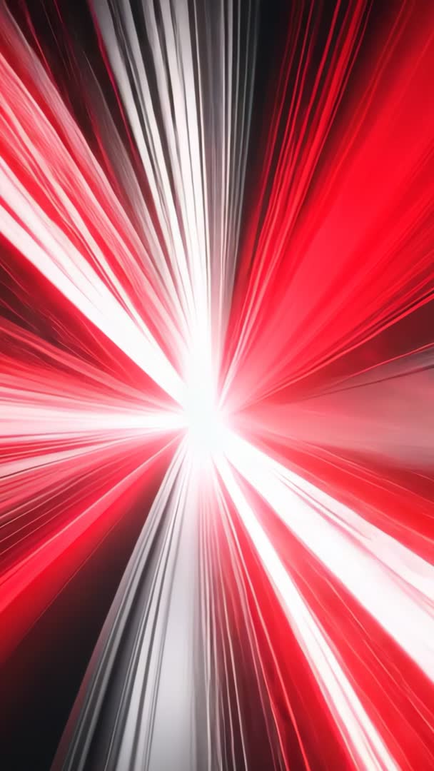 AI Generated Image. Showcasing accelerating red and white light beams converging into central vanishing point, creating tubular tunnel effect and intense pulsing glow. Suitable for tech trailers, event openers, music visuals, product promos, VR transitions, social media vertical ads, title cards, lower thirds. Offering high-contrast dynamic motion for conveying speed, energy, digital futurism. Pairing well with bold sans-serif typography, electronic soundtracks, and dramatic color grading shifts. Providing loopable motion for seamless background use and quick transitions. Delivering attention-grabbing thumbnail for mobile-first campaigns and vertical displays. Compatible with 9:16 aspect ratio, 4K resolution, 30/60 fps workflows. Useful for branding, UI intros, broadcast stingers, and promotional reels requiring futuristic momentum.