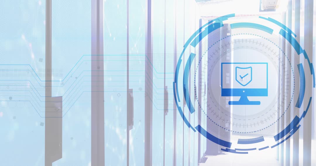 Video frame shows advanced digital interface highlighting cybersecurity within a server environment. Virtual elements overlay couple sophisticated network structure denoting data safety measures. Suitable for technology presentations, cybersecurity firms, or innovation thought-leadership material emphasizing protection against digital threats.