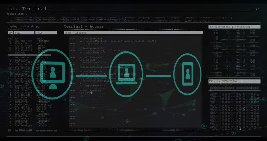 Shows dynamic animation demonstrating digital interface focused on data processing and scanning. Useful for illustrating concepts in cybersecurity technology, programming, or digital data management education or presentations emphasizing advanced service mechanisms.
