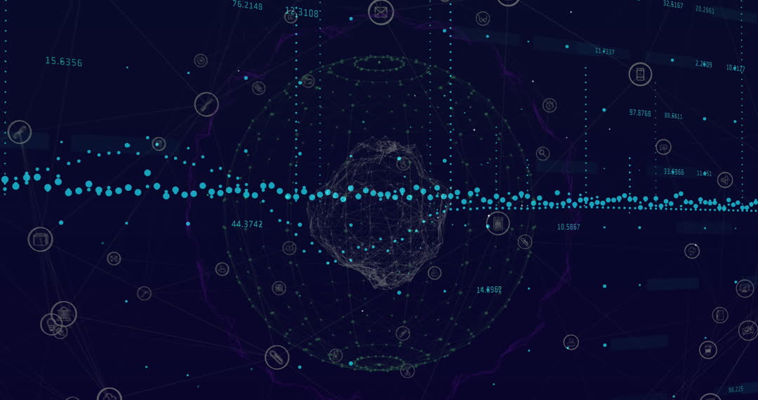 Depicts a modern digital interface with a focus on global financial data analytics. The globe and network nodes represent a complex system of data flow and connectivity. Ideal for illustrating financial technology advancements, IoT networks, and global data exchange concepts.