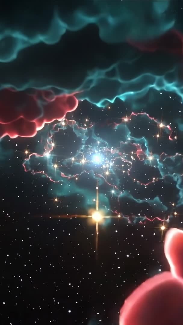 - Advancing camera revealing central star through spiraling cyan-pink nebula vertical video