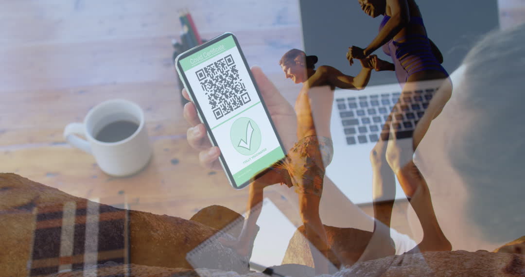 - Adventure and Technology Concept with Hiking and Digital Green Pass