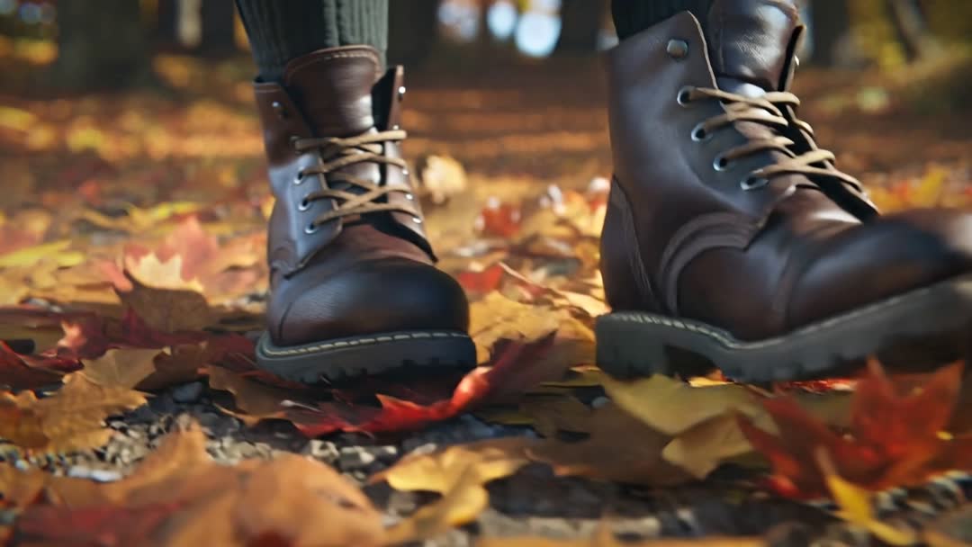 - Adventure Boots Crushing Leaves in Autumn Forest