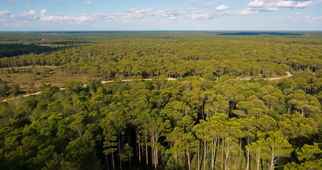 AI Generated Image. Drone moves above lush pine trees, uncovering a meandering dirt road amid dense green expanse. This video is perfect for illustrating themes of nature exploration, forest conservation, and tranquil rural escape. Ideal for travel advertisements, environmental documentaries, and educational videos on forest ecosystems.