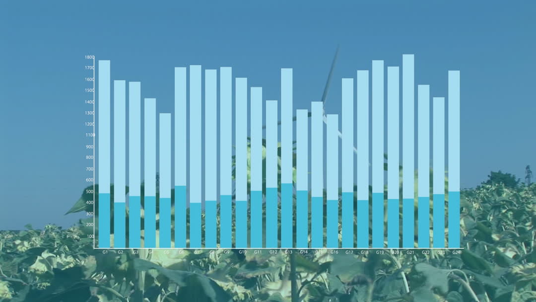 Illustrates data insights related to agriculture, sustainability efforts. Useful for presentations on environmental technology, sustainable farming, combining data analysis with eco-friendly initiatives.