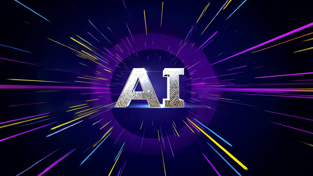 AI Generated Image. Video showing metallic AI letters rising from glowing purple core while multicolor neon streaks radiate outward at high speed, creating warp tunnel effect. Design featuring circuit pattern etched into metal surface, holographic shimmer, lens-flare highlights for cinematic feel. Project serving multiple uses: opener for tech product reveal, conference intro, startup pitch, promo spot, social media teaser, background for AI-focused presentations. File offering clean composition, strong center focus, bold color contrast, easy logo replacement or title overlay during post-production. Serving broadcast, streaming, website hero, event title sequence, motion graphic templates, educational videos about machine learning, automation, innovation.