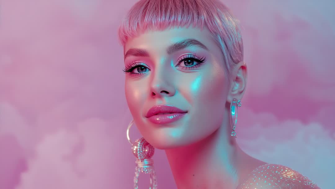 AI-Generated Glam Fashion Portrait Shining with Pastel Colors Video