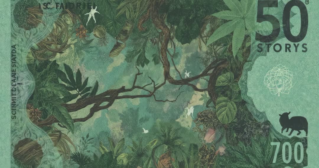 AI Generated Image. This video presents a virtual digital currency featuring lush jungle foliage and botanical elements. The detailed illustrative style showcases flowing vines, outlined animal silhouettes, and plant motifs framed with currency indicators and patterns commonly seen in banknotes. Ideal for design projects concerning cryptographic money or eco-financial narratives. This video could be used for industries focused on finance, cryptocurrency, environmental illustrations, or futuristic currency concepts.
