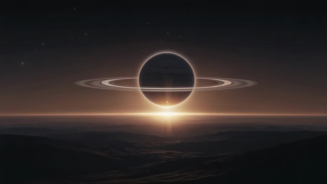AI-Generated Saturn-Like Planet Silhouette with Rising Star Video