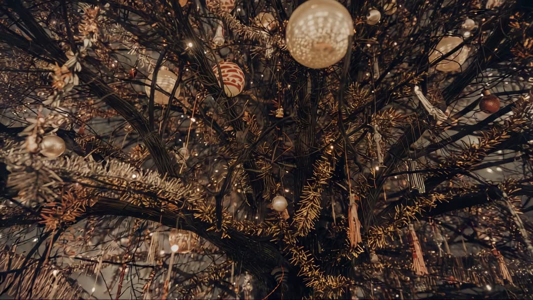 AI-Powered Festive Christmas Tree with Elegant Tinsel and Warm Lights Video