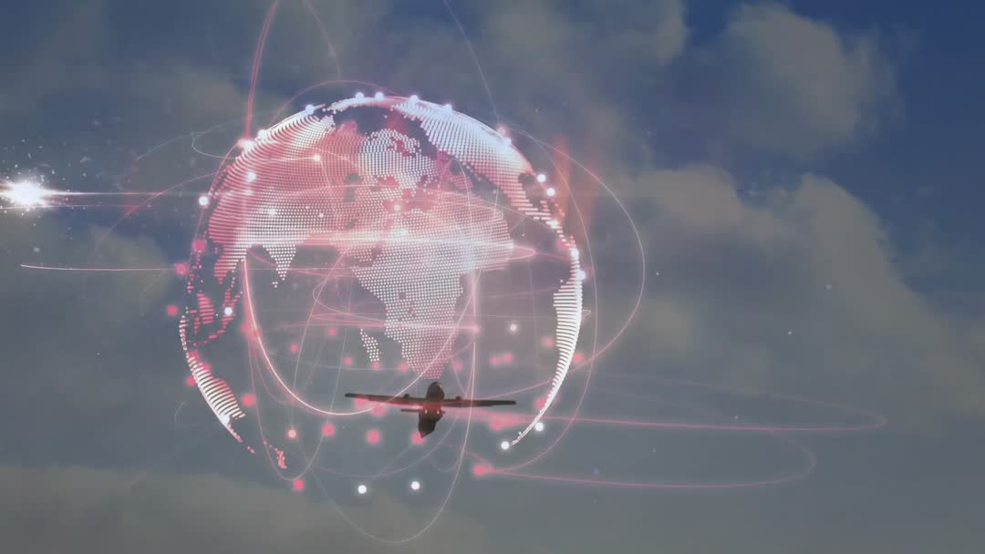 Aircraft Flying Into Futuristic Digital Global Network Video