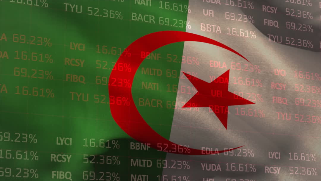 - Algerian Flag with Stock Market Data Overlay Represents Economic Insights
