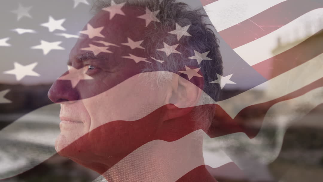 Evoking a strong sense of patriotism and national pride, the video creatively merges an older man's profile with the iconic Stars and Stripes banner of the United States. This composite can be used in themes accentuating American pride, patriotic events, national holidays like Independence Day, or for organizations that focus on American heritage and values. Commercially available for advertisements or promotional materials addressing American audience.