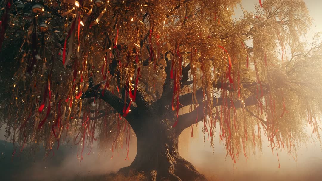 <a target="_blank" href=https://pikwizard.com/video/ancient-mystical-tree-draped-in-red-ribbons-at-dawn/e325d50f63b4926617a39944c59f47cf/>PikWizard</a>