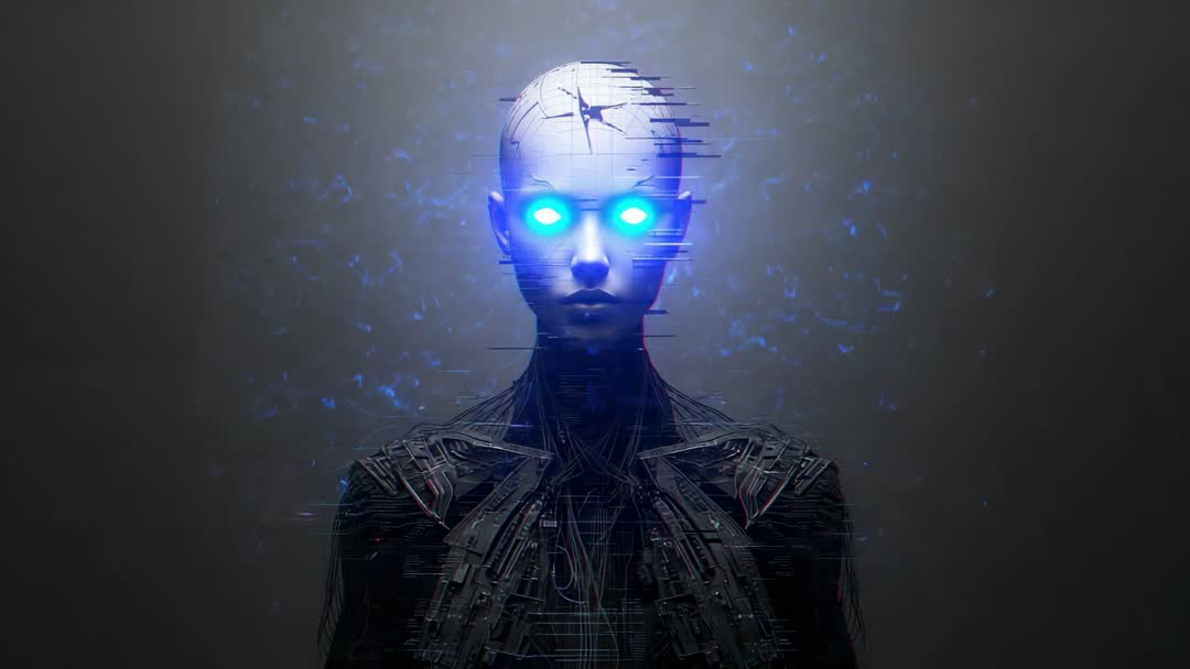 AI Generated Image. This futuristic clip focuses on a high-tech android emitting a captivating blue glow, with visible glitches and digital particles highlighting its artificial intricacies. As the android interfaces with its environment, it emits a mesmerizing aura against a plain gray backdrop. Ideal for use in technology promotions, sci-fi movies, AI innovation demonstrations, or as a visual element in a futuristic marketing campaign. The distinctive palette and effects symbolize the evolving frontier of human-machine integration and the limitless possibilities of advanced robotics.