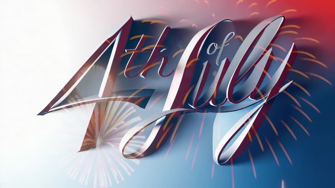 - Animated 4th of July Text with Fireworks and Patriotic Colors