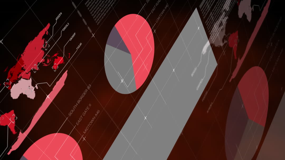 Animation showcases dynamic data visualization suitable for illustrating complex statistical processes. Elements in red create a modern and stylized digital look, effective for technology or business presentations. Useful for industry forecasts or insights videos highlighting business data interpretation.