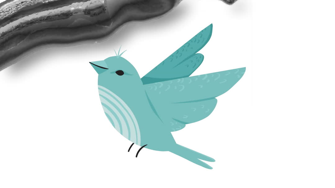 Charming animation showcases a blue bird with unique vector art style, accompanied by dynamic black wave patterns against a white background. Suitable for digital platforms, websites, or projects emphasizing creativity, modern design, and vector art. Ideal for educational media, artistic presentations, backgrounds for digital spotlights, and design showcases.