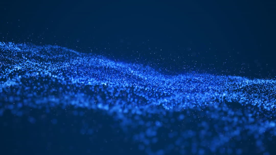 This animated scene depicts a mesmerizing blue glowing mesh delicately moving on a dark background, simulating a wave of particles. Perfect for digital art projects, science fiction designs, and technology-related presentations. It captures the essence of mysterious and futuristic aesthetics beautifully.