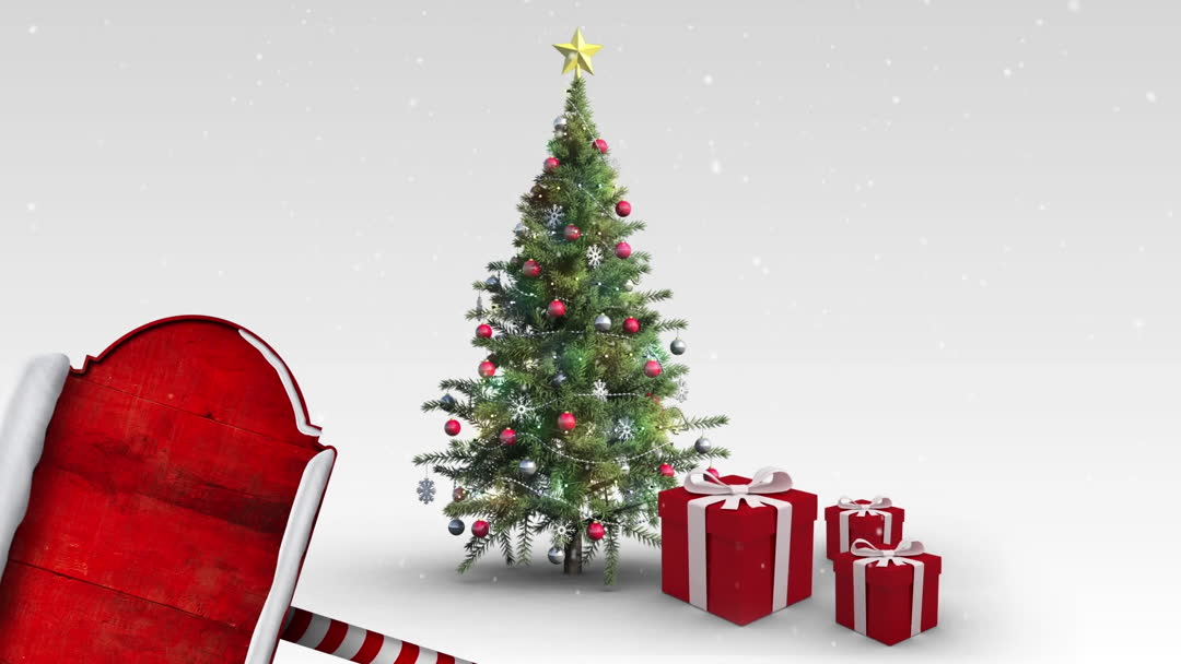 Animated Christmas Tree with Gifts and Wooden Sign Video