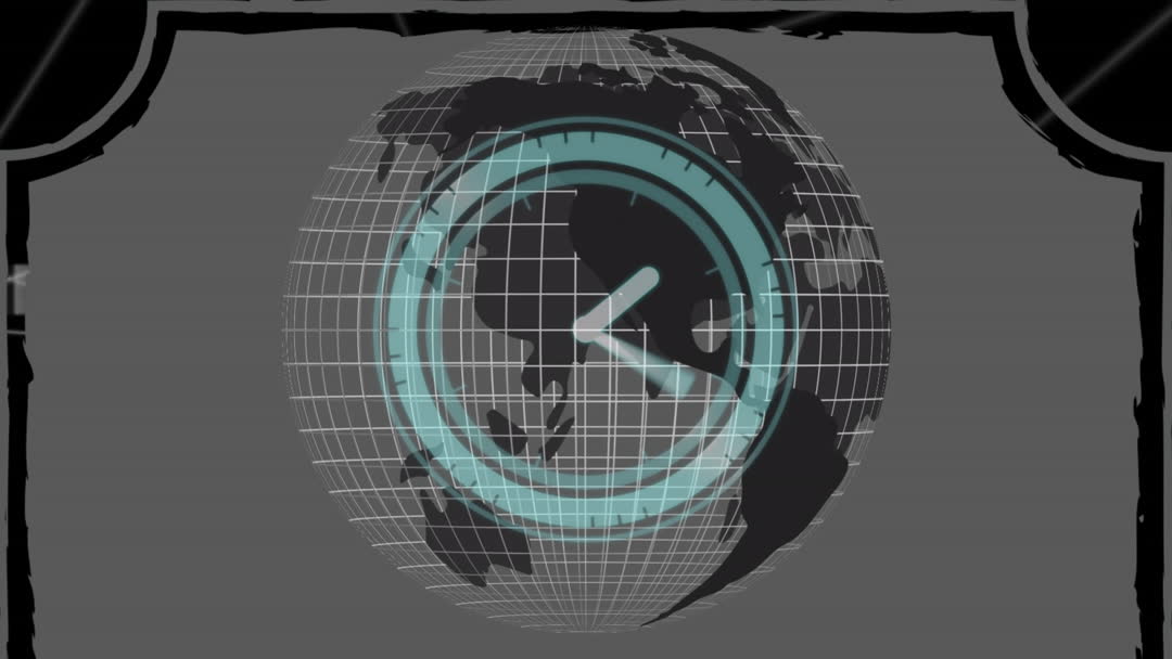 - Animated Clock Overlaid on a Spinning Grid Globe Concept