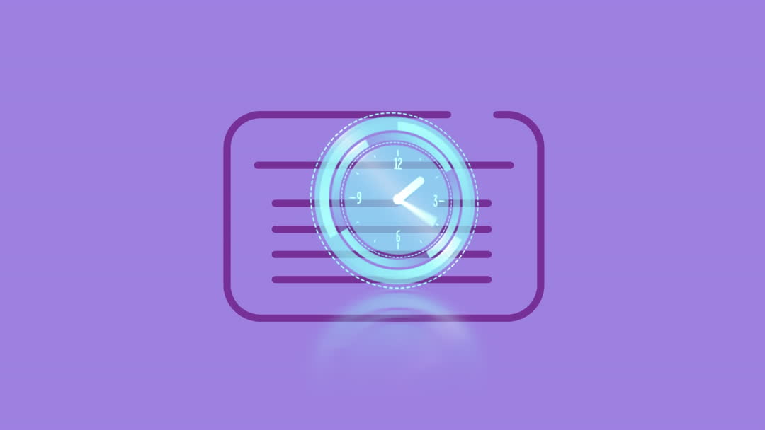 This animation shows an outline of a clock appearing and disappearing against a vibrant blue background with a ticking sound effect. It symbolizes the concept of time and scheduling. This could be used in multimedia projects related to time management, scheduling apps or as an engaging introduction in videos focusing on productivity and organization.
