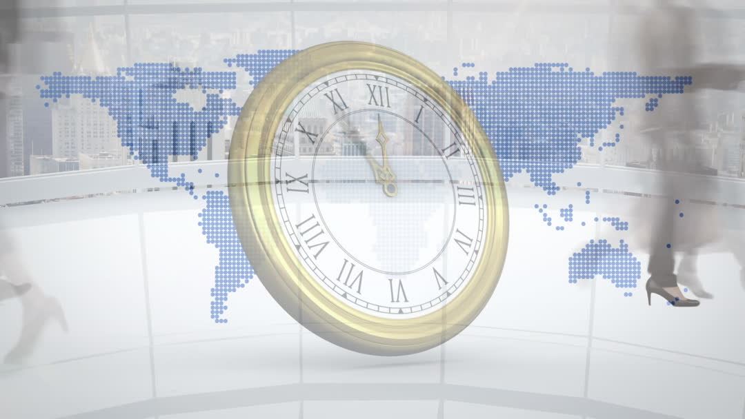 - Animated Clock Overlaying World Map Illustrating Global Business Time Management