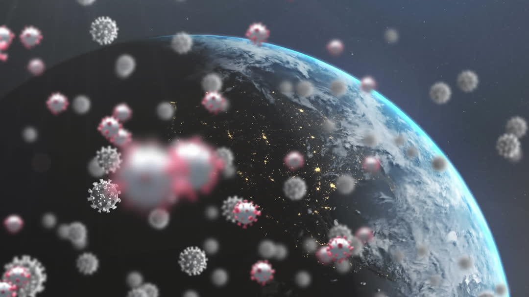 - Animated COVID-19 Cells Floating Around Earth Highlighting Global Pandemic