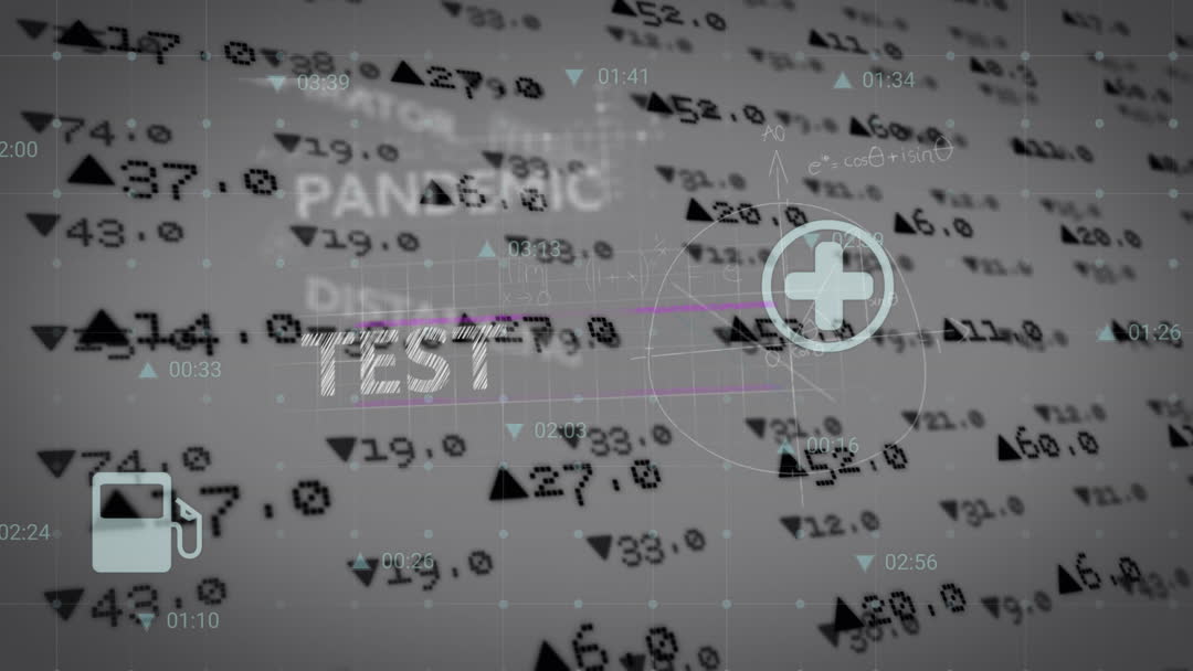 Creative composition showing animated text and mathematical equations overlaid onto stock market data signifies the unprecedented impact of the COVID-19 pandemic on global economies. This visual is ideal for illustrating articles, presentations, or reports focused on financial instability caused by health crises. It captures the complexity and intertwining of public health and economic sectors during pandemic events.