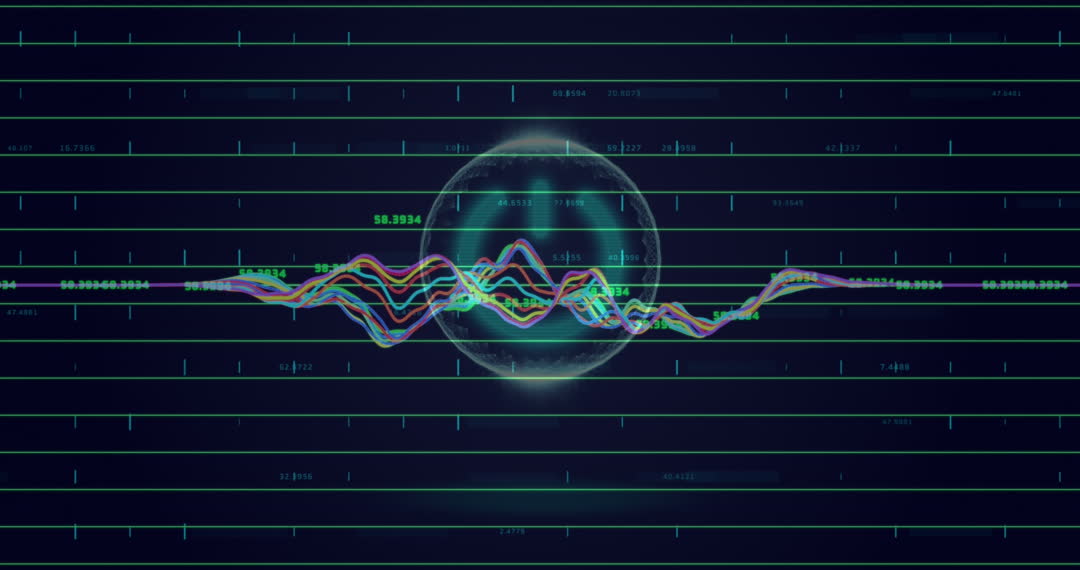 Dynamic digital graphic showing an animated analytic graph with a globe focus, illustrating data flow and processing. Useful for depicting concepts related to global finance, business solutions, technological advancements, and data management strategies in presentations, websites, and marketing materials.
