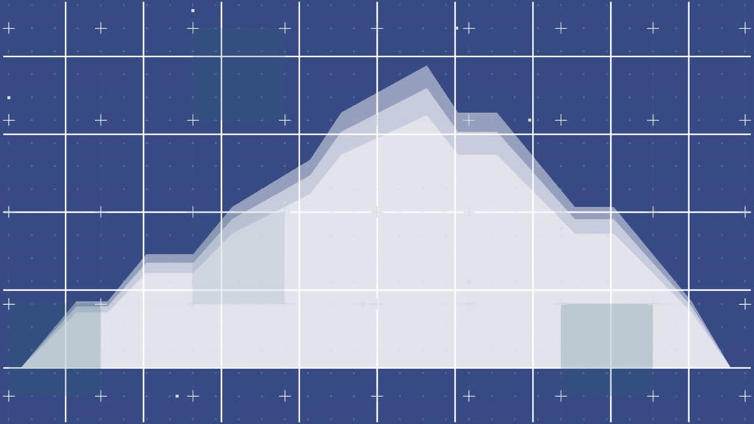 This animation showcases visual representation of data against a blue grid, filled with overlapping shades and dynamic markers. Ideal for illustrating concepts related to analytics, financial trends, global business dynamics, computing models, or complex data processing in corporate presentations.