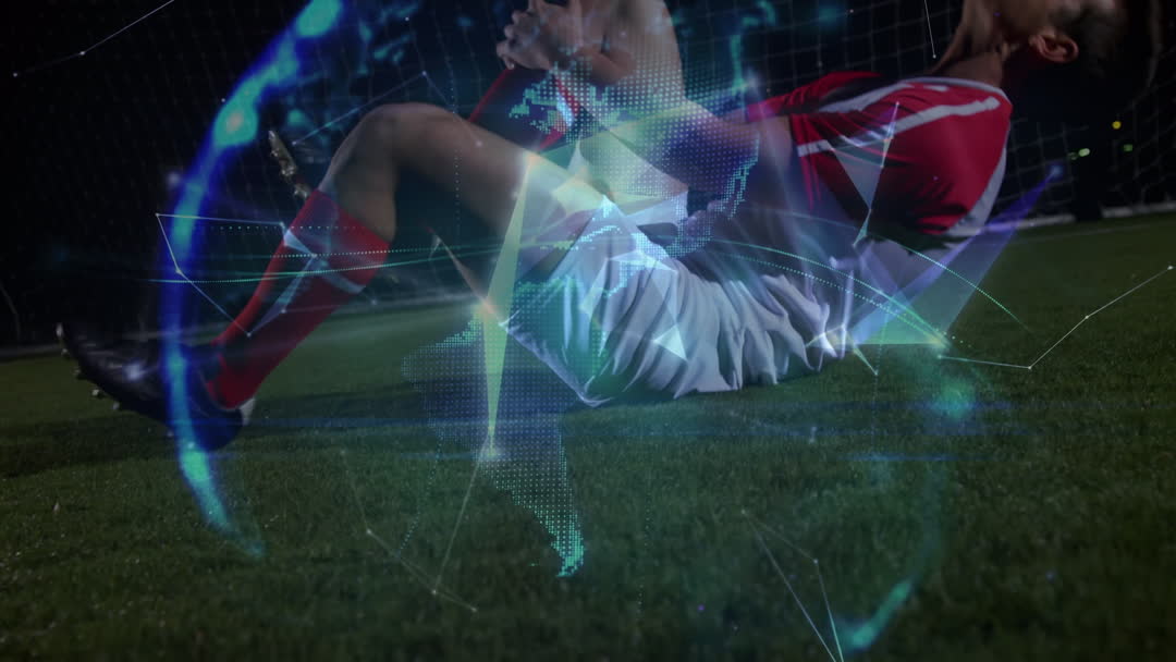 Animated Data Overlay on Injured Soccer Player on Field Video