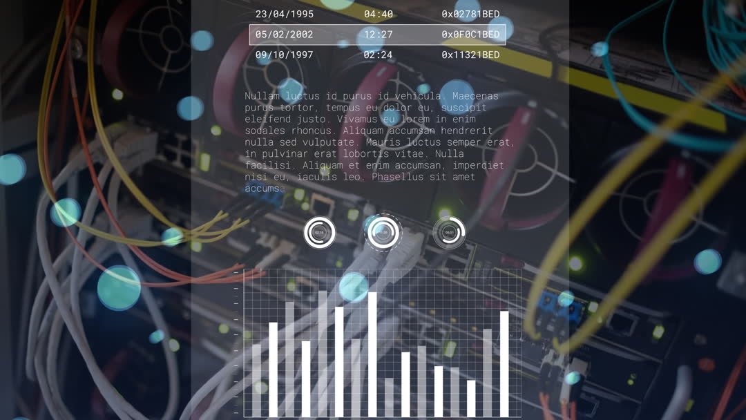 Animated Data Processing in a Server Room Overlay with Interface Elements Video
