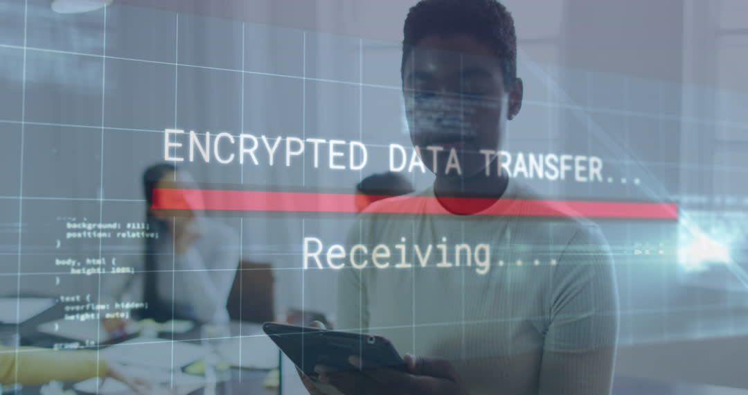 Captures an animated sequence of data appearing during use of a tablet by a businesswoman. Perfect for illustrating concepts of cybersecurity, technology in business environments, or global digital exchanges. Useful for web design, presentations on digital security, or corporate training materials.