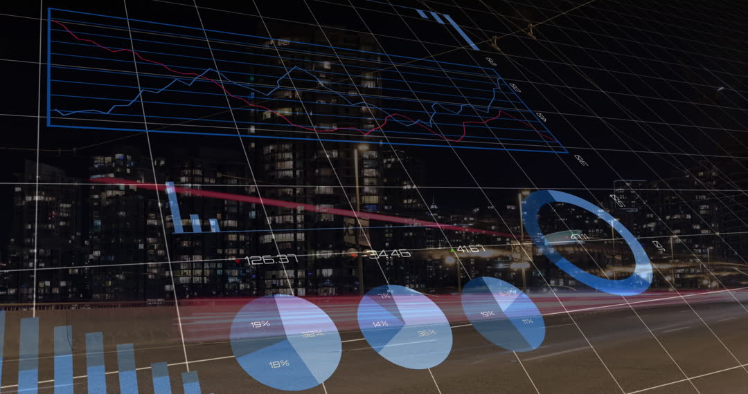 This visually appealing video illustrates an animated digital data dashboard superimposed over a vibrant cityscape at night, conveying themes of modern finance and technological integration. The presentation of dynamic data such as pie charts, line graphs, and other statistics suggests a focus on stock market analysis or digital economy. Useful for illustrating concepts related to global business intelligence, technology innovations, and urbanized digital infrastructure. Ideal for websites, financial reports, presentations, or futurism-themed projects.