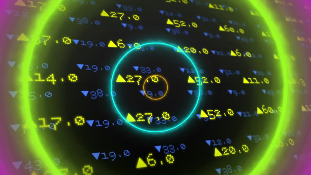 Vibrant animated sequence showing digital data scanning interface with emphasis on numbers and graphics. Suitable for illustrating concepts related to digital security, data processing, and futuristic technology in presentations or educational content. Ideal for background use in tech-themed projects and visuals.