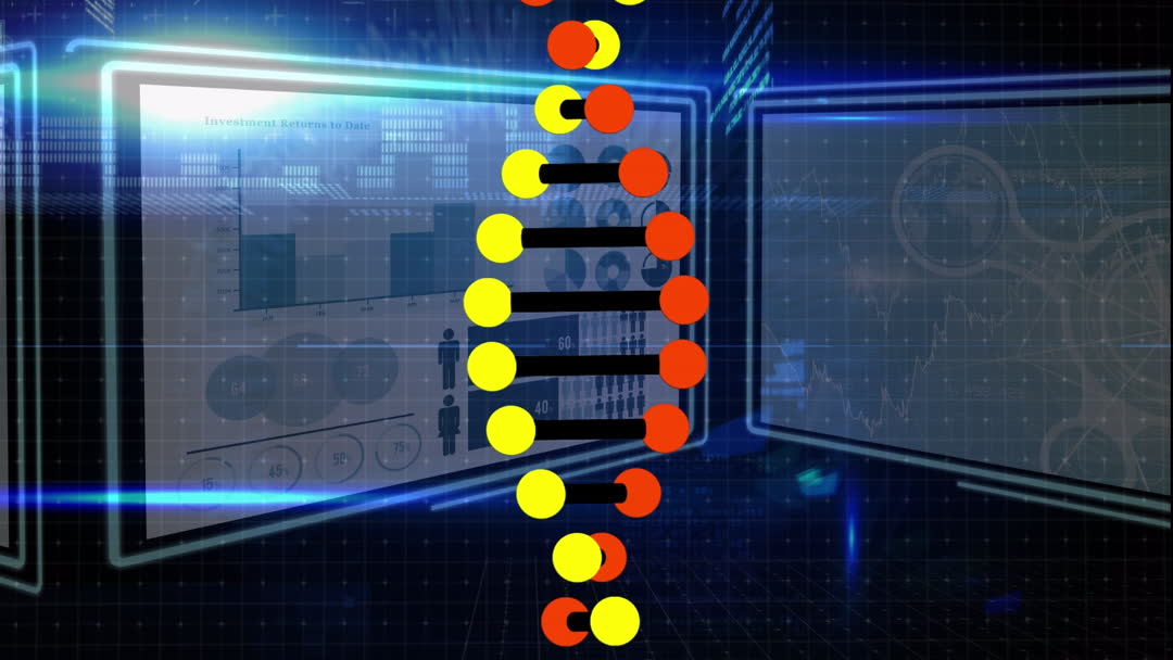 - Animated DNA Strand Overlaying Digital Data Displays in Virtual Space