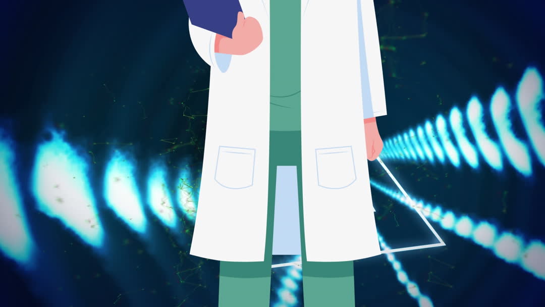 This animation illustrates a healthcare professional against a dynamic and futuristic neon tunnel background. Often used to depict modern advancements in telemedicine, digital healthcare services, or healthcare technology innovations. Suitable for webinars, professional presentations, medical-related articles, or social media content highlighting technological developments in the healthcare industry.