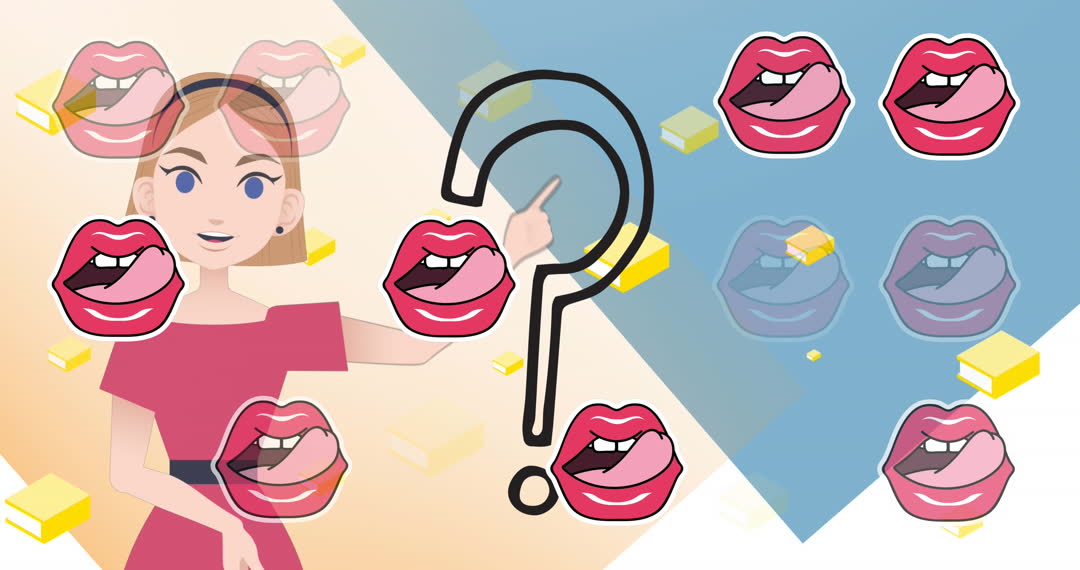 Cartoon animation featuring a female character with various colorful mouth icons creates a dynamic visual element. Ideal for videos or design projects focusing on communication, expression, or interactive storytelling. Visually engaging for educational materials, social media graphics, or marketing presentations.